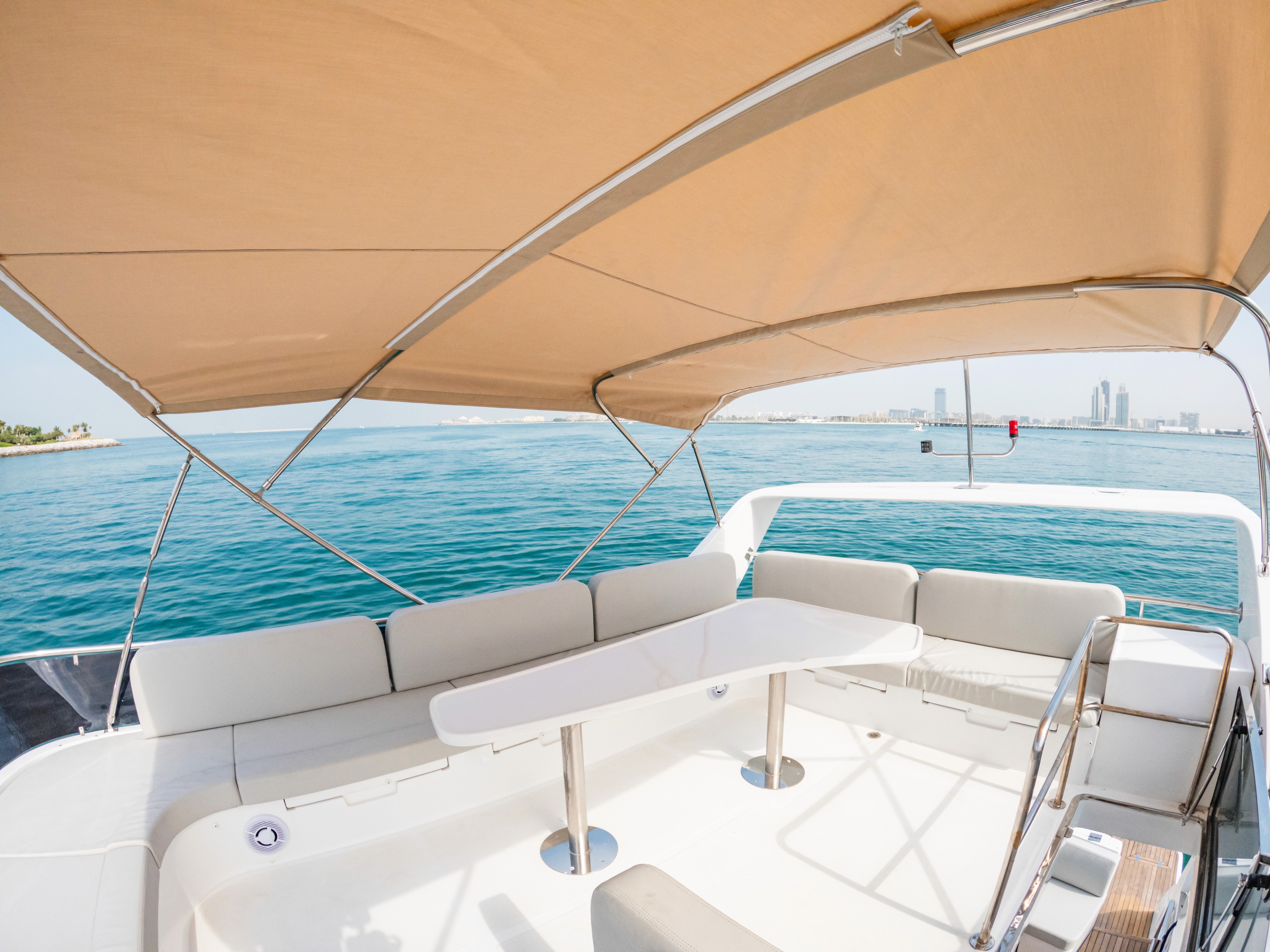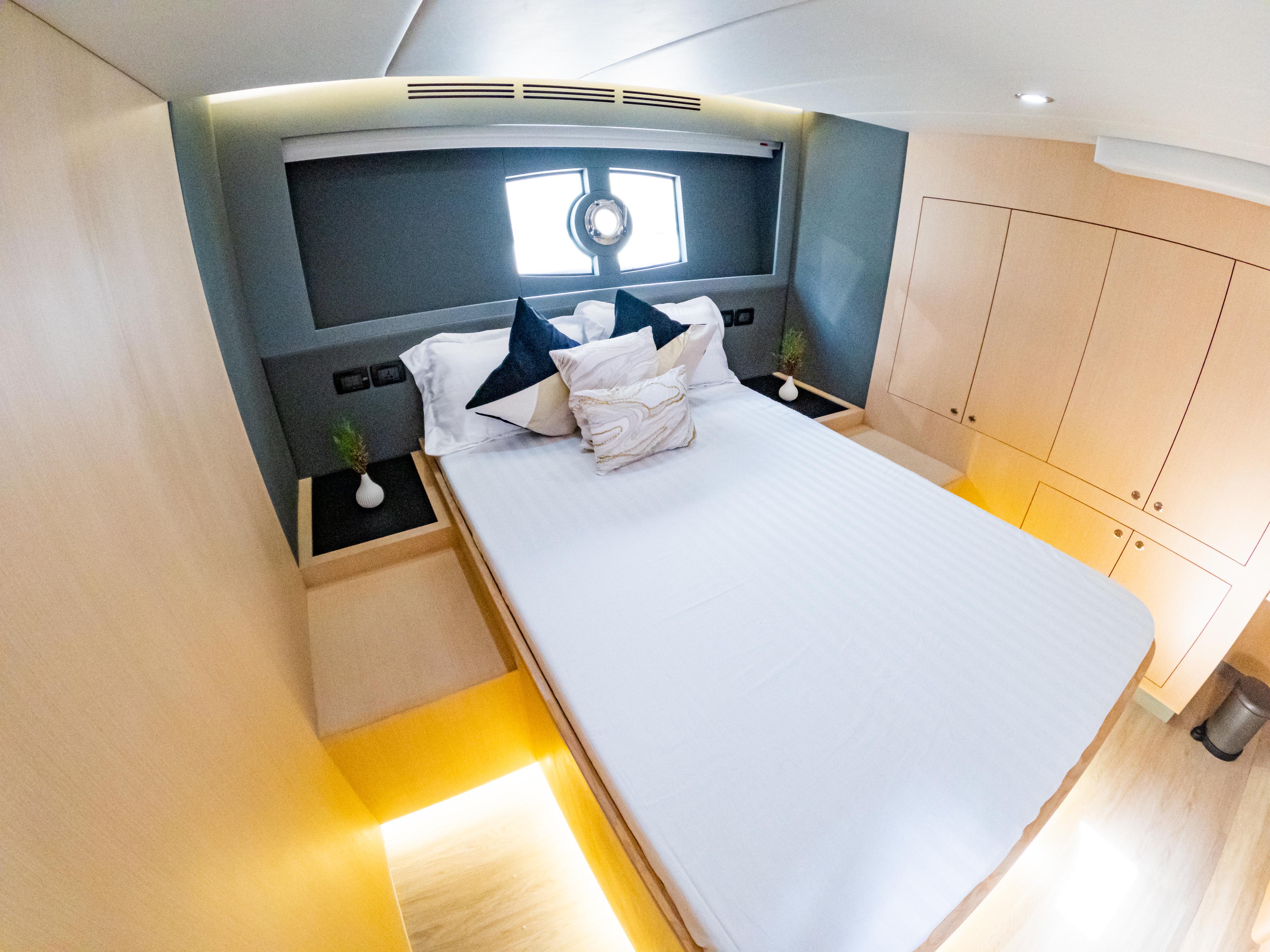 Embark on an adventurous journey with 1StopYachts aboard our 52ft Skywalker yacht, designed for exploration and relaxation. This versatile vessel can accommodate up to 17 guests for day trips and 4 guests overnight, offering two bedrooms and two toilets, including a master cabin and twin cabin. Enjoy the convenience of a BBQ and a sound system with a JBL Bluetooth speaker. With a crew of two, including a captain, your journey will be safe and enjoyable. Complimentary amenities include water, soft drinks, and ice, ensuring a refreshing experience on board.