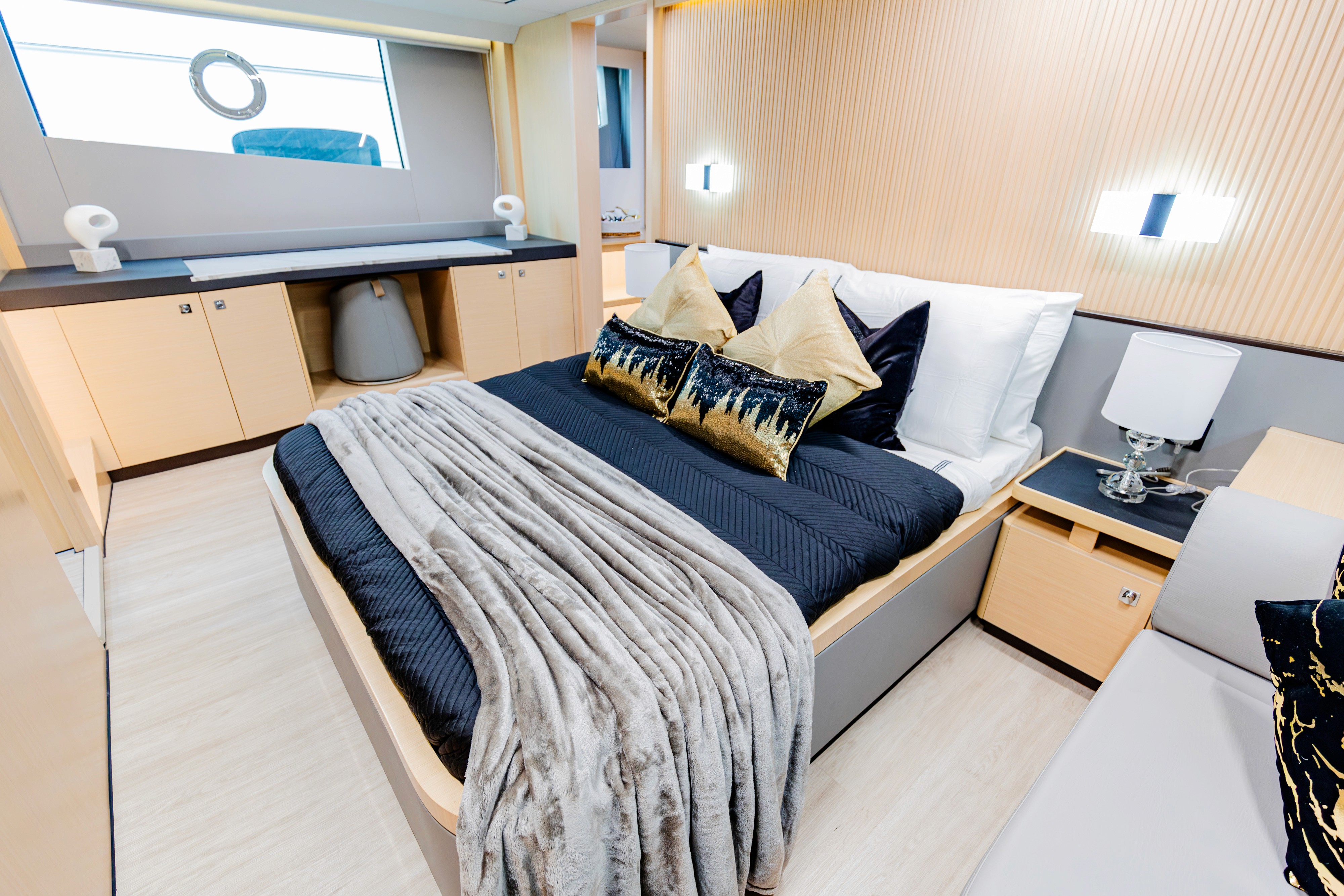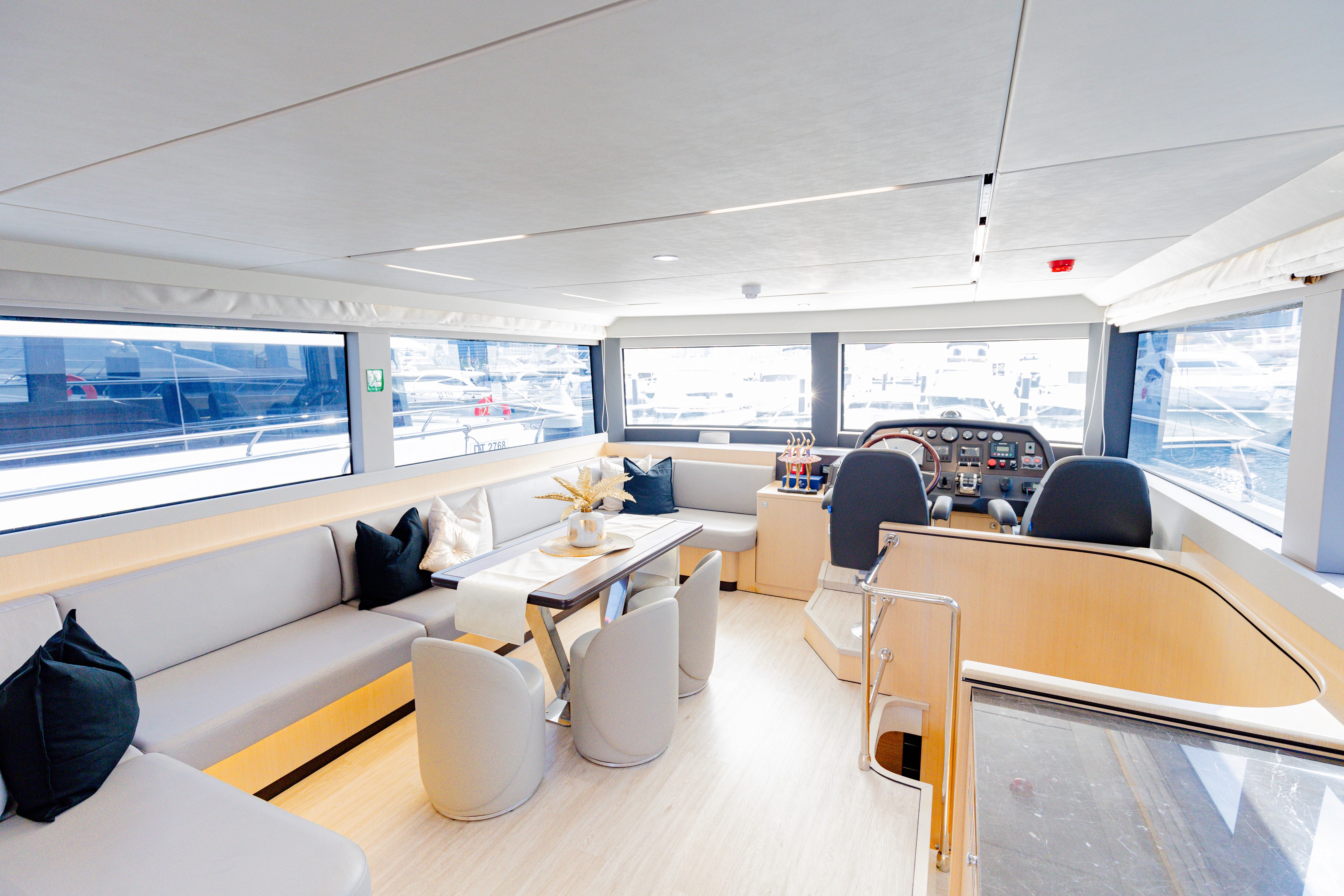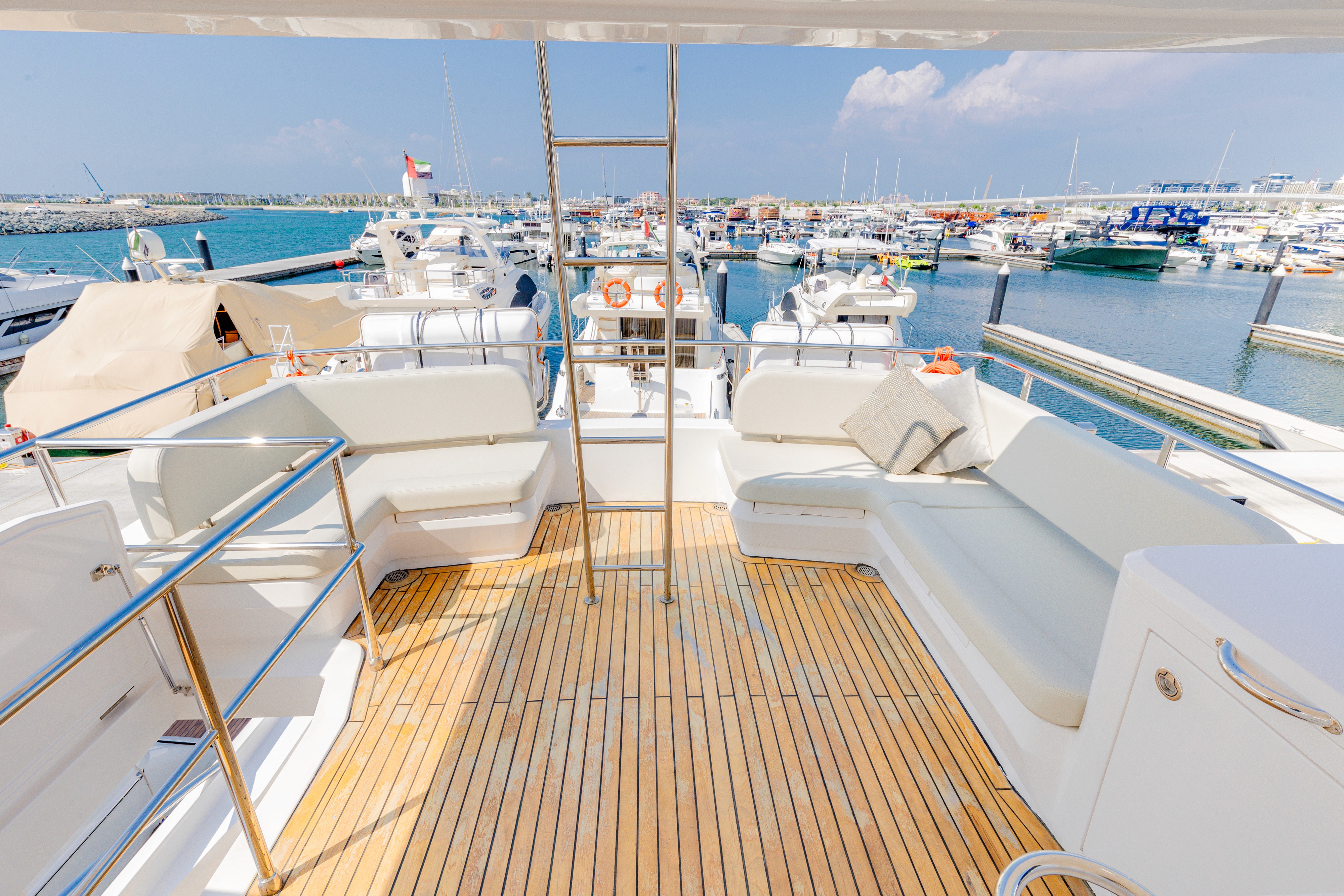 The 62ft Skywalker, built in 2023, blends modern design with functionality, offering capacity for 25 guests and overnight accommodation for smaller groups. Its balance of indoor comfort and open deck space makes it versatile for day cruises, private events, or short stays on the water. As part of the 1StopYachts fleet, it provides a smooth and reliable charter experience along Dubai’s coastline.
